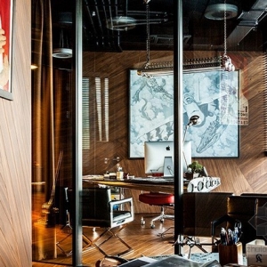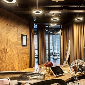 这是一座位于莫斯科的Avialeasing Office办公室,由Noor设计的。现代办公室设计采用不对称的空间灵感,打造了一个舒适的办公空间。黑的的天花板,木质的墙面和地板,多了一份沉稳的味道。