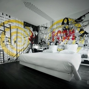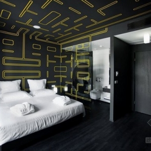 这是一座位于葡萄牙的酒店,特色主题酒店设计秉承了可持续发展的理念,主题酒店在室内设计中,每间房间都配备了一个自动照明系统。设计师将每个房间都定制了一个鲜明的主题,从街头艺术到漫画,就像是一个个有趣的展览空间。