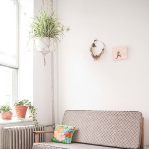 温馨小屋住宅室内设计,设计师Leah Goren每天就是在这间小房间里操作着那台并不名贵但却是心爱的缝纫机,当阳光明媚的时候,她也会和喜爱的宠物猫玩一会躲猫猫~整个房间弥漫的清淡味道就好像稀释过的水彩画,带来慢生活的喜悦。