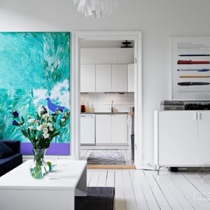 蓝白清新公寓室内装修设计,白色是白搭的颜色,很多情况我们会忽视的一种背景色。而在各种搭配之中,蓝色与白色的搭配却最显得有 一种莫名的小清新的味道,或许不需要大面积的蓝,只需和这套58平米的公寓一样,空间搭配少些蓝色软装即可。