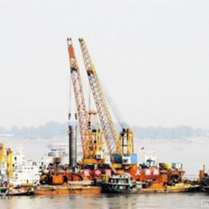 2010年6月4日,水上施工全面展开。 2010年10月17日,水中主塔桩基全部完成。