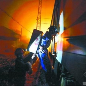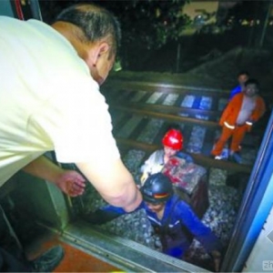 巨石被成功爆破 百吨巨石砸路基铁轨变形 近段时间的连续降雨,山体滑坡、塌方等险情时有出现。前晚,重庆工务段接到警报:19时53分,綦江区镇紫街火车站和两河口火车站之间线路发生滑坡,4块巨石砸到铁路路基上,巡线工现场勘查发现,这些巨石共有200多吨重,其中最大的一块超过100吨,它将路基外移了约800毫米,铁轨受挤压后变形,5根水泥枕木遭到破损。 昨天下午,重庆工务段相关负责人告诉记者,据巡线工描述,事发时,险情多发路段风大雨大,他透过雨雾看到砸向铁路路基的巨石,最近的一块距铁轨不足两米。 事发区域两端的火车站迅速对线路封控,将两列正准备对向行驶的列车扣停站内。重庆工务段随即启动紧急预案,派出50余人组成抢通突击队,出动抢险车近10台。 求援 21时许 两单位急运炸药雷管 根据铁路部门的紧急抢修预案,中铁十二局和松藻运销部分别向事发地点运送炸药、雷管和工作人员,对挡道巨石爆破清除。 “喂,松藻煤电公司吗,镇紫街路段的铁路被巨石砸断,请求炸药和雷管支援。”21时许,重庆能源集团松藻运销部调度室接到了重庆工务段求援电话。与此同时,同样的紧急求助电话也打到了正在附近修建渝黔客运专线的中铁十二局。 松藻运销部调度室增援命令传达到逢春煤矿,“立即备好炸药和雷管,安排爆破作业人员参与线路抢通行动”。 支援 22时许 4车站护驾“爆破专列” 在逢春煤矿,上早班的采煤2队爆破工王朝国与采煤3队爆破工陈沄,背着40公斤炸药和40发雷管在保卫人员护送下,来到松藻矿区铁路白岩火车站。 与此同时,运销部副部长陈宏伟早已调来一辆轨道车在此处接应,并坐镇指挥所需爆破物资的护送。 22时许,他们小心翼翼地爬上“爆破专列”,驶向近100公里外的事发现场。沿途白岩火车站、金鸡岩火车站、小鱼沱火车站、麻柳滩火车站等4车站值班站长,也在站上负责指挥,确保这辆“爆破专列”安全驶过。 爆破3时20分 连续两次爆破清除巨石 在抢险现场,两河口火车站的5名工作人员早已拉起隔离线,并清理了一些泥石。在“爆炸专列”运送的炸药和雷管到达之前,中铁十二局的爆破物品已先期抵达。抢险人员给巨石打孔,装炸药。“专列”抵达后,第二批炸药和雷管也加入抢险行列。 昨天凌晨2时许,随着一声巨响,100多吨重的巨石被成功爆破。3时20分,第二次爆破,挡道石头被抢险人员全部“搞定”。 3时40分 渝黔铁路清障恢复通行 两次爆破成功之后,抢险人员清理石块,并对变形的铁轨进行处理。 据重庆工务段相关负责人介绍,通行该路段的数趟列车主要有贵州、云南和广西方向的,事发后有的列车改道前行,有的被阻在附近火车站。 昨天3时40分,中断运行7小时47分钟的渝黔铁路大动脉,恢复通行。 抢通