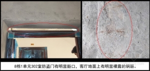 装灯打穿楼板 门框留下豁口 该住宅小区第8栋一单元202室的业主张先生告诉记者,他去年8月份收到新房,今年4月份开始装修,前段时间准备装客厅吊灯,在天花板上打洞预埋塑料线盒时,却不料把2、3楼之间的楼板打通了。记者在张先生家里看到,透过楼板上安装的线盒可看到楼上的情景。在张先生楼上302室,记者在客厅地板上明显看到楼下埋设的塑料线盒,通过打穿的小洞可以看到楼下的整个客厅的情况,楼板已被打穿。在302室客厅与阳台交汇的地面上,记者看到有明显裸露的钢筋,302室由开发商统一安装的防盗门没有封住整个门框,门框上沿留下了明显的豁口。张先生说:“我们普通老百姓买套房子不容易,攒了一辈子的钱来买房,积蓄全用上还在银行贷了款,却买到这样偷工减料的危房,真让人揪心!” 楼顶墙体渗水 业主不敢装修入住 小区第15栋一单元顶层501和502的业主反映,他们家近期楼顶、墙体多处出现渗水情况,外面下大雨时家里下小雨,前段时间装修时也出现打穿楼板的情况,现在不敢再装修入住了。在小区第5栋一单元501室,业主林先生告诉记者,他家是去年装修入住的,每到下雨时,他家客厅、阳台、靠楼梯过道的墙面就会出现大量渗水,他把家里的所有水管都检查了,没有发现破裂的地方,墙体渗水是从外面渗进来的,房屋墙体防水存在严重质量问题。记者采访时,看到小区第6栋和第8栋两栋楼房外墙墙面有明显裂痕。 楼板厚度仅6厘米 30多位业主要求换房 小区的一名饶姓业主告诉记者,开发商偷工减料粗制滥造,许多业主买房后发现房屋存在各种严重质量问题,像8栋的张先生家房屋楼板厚度只有6厘米,根据国家混凝土结构工程施工质量验收规范,楼板厚度起码要在8厘米以上,表面粉质层最薄也要2厘米,标准误差范围可在“正八负五”毫米之间。楼板厚度不够存在严重安全隐患,现在业主们非常担心房屋安全问题。前段时间,小区内30多位业主一起找开发商投诉要求换房,但开发商只同意对存在问题的房屋进行修补,对此业主们并不满意。 据了解,金溪县现代城·城市花园楼盘的开发商是抚州市金锋房地产开发有限公司,该楼盘目前建有21栋小高层商品房。据金溪县住宅与房地产信息网信息显示,从2011年2月份开始,金溪县现代城·城市花园开发商陆续拿到预售资格证书开始销售。然而随着近期一些业主收房入住,房屋质量问题不断暴露。 |