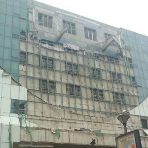 事发突然 曾有巨响 发生事故的北方国贸大厦地上共设有七层,目测楼高约30米。“北方国贸那边先是发出了很大的声音,后来铁架子纷纷往下倒。”住在北方国贸对面四楼的居民表示,事故发生得非常突然,并无预兆。 现场工人介绍,事故发生时共有五名工友站在脚手架上,“有的人离大厦比较近,看到架子快塌了,就赶紧跑到大厦里面。”但仍有两名工友与脚手架一同坠落受伤。 为救伤者 消防队徒手救人 救援工作于上午11时许结束,事故现场瓦砾遍地,步行街一旁堆积着百余根钢管。北方国贸大厦旁停靠的四辆120救护车陆续驶离事故现场,车内没有搭载伤员。 消防人员从现场徒手挖出了一名工人,并救出一位中年妇女。“对这名妇女的救援难度比较大,脚手架的横梁压在她的腰上,我们一共用了四个千斤顶,支起脚手架后再把人拖出来。”该消防员表示,两名伤者“应该都没有大的问题”。 一人伤势较重已转入ICU 上午10时30分,本网另一路记者赶到事故现场附近的青岛市第八人民医院。此时医院急诊楼门前正有四五名医生推着担架车等候伤员。据一名实习医生介绍,医院已经接收了四名伤者,包括两名男性工人和两名女性市民。其中一位伤者带着一个三岁左右的孩子,“幸运的是孩子没有受伤。” 记者在第八人民医院急诊楼一楼诊室里看到了两名受伤的工人。一名工人胸部被砸伤,呼吸困难,需借助呼吸机维持,医生为他进行了胸腔导流。此外,这名工人因右腿胫骨骨折缠着绷带,面部也被划伤,满脸黑红的血迹。工友表示,这名伤势较重的工人姓胡,今年28岁。急诊室内另一名中年男性工人正在输液,并无明显的伤痕。 6月4日中午,胡姓工人因伤势较重被转入重症监护室。重症监护室吕医生说,该工人目前的伤势不容乐观,“浑身都是伤,失血比较多”,医生正在竭力抢救。截至下午5时,该工人已接受了长达两小时的手术。 施工单位无法确定 事故原因尚待调查 青岛北方国贸大厦办公室工作人员唐女士表示,目前事故原因尚不清楚,自己也并不清楚工程施工单位与责任方。青岛利群集团股份有限公司总裁办公室工作人员则称,“我们已经派人处理此事,其他的不方便透露。” 对此,青岛李沧区安全生产监督管理局工作人员表示,李沧区政府已经成立由李沧区安监局牵头的事故调查小组,调查小组正在对事故原因进行调查,并将作出责任认定。安监局工作人员坦言,北方国贸大厦虽隶属于利群集团,但“其中的所属关系比较复杂,现在还不清楚施工单位是谁”。 青岛利群并购北方国贸仅一年余 记者了解到,青岛利群北方国贸大厦集团股份有限公司是国家大型企业,位于青岛市核心购物中心——李村商业步行街的黄金地段,营业面积5万余平方米,并建有李沧区最大的停车场。 2012年3月,青岛利群并购北方国贸,利群借此进入李村商圈,多年来维客、利客来、北方国贸“李村三强”格局也被打破,这也是近几年来青岛商业最大的一起并购案。 2013年3月25日,青岛利群集团官网挂出招标公告,对北方国贸外玻璃幕墙、外墙钢结构、石材幕墙进行招标施工。 |