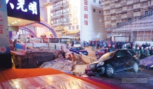 一声闷响,中街地陷,店门没了…… 中街一施工现场塌陷,眼镜店5名人员受困,奔驰车轮陷入坑,所幸无人员伤亡 昨晚7时30分,中街大光明眼镜店门前,一施工现场突发塌方事故,塌方面积近40平方米,深度6米左右(约两层楼高)。现场未有人员伤亡。事故发生在大光明眼镜店的正门,眼镜店五名工作人员受困店中。现场另有一辆奔驰商务车险些坠入深坑。夜雨中,公安和消防部门展开一场紧急救援。 据现场附近居民反映,该起事故发生之前,事发地就已出现下沉,但这一征兆并未引起施工方足够重视。 亲历者:眼镜店大门突然“消失” “塌陷了,快来解救我们!”昨晚7时40分,中街大光明眼镜店验光师郭勇拨打沈阳晚报新闻热线96009。 郭勇告诉记者,晚7时30分,他们正常在店里工作,忽然感觉脚下晃动,紧接着看见眼镜店大门倾斜,随即一声闷响,门前“第一大道人防”的施工场地迅速塌陷。“塌了40多平方米,深度6米左右,大门齐刷刷掉下去,我们走不出去了。” 昨晚8时许,记者赶到时,事故现场已被施工单位拉起封锁线,附近交通受阻严重。“别过来,这地下全空了!”记者走近时被一名身着工作服的壮汉拦下。几名记者掏出相机和摄影机,也被一名黑夜人用雨伞阻挡采访。 记者目测,塌方周围还有施工隔离板,塌方现场内还散乱堆放着劳动工具。“我十分钟前还在眼镜店门前走过,太可怕了!”一对路过的情侣感慨说。 事故发生后,110和119的车辆均第一时间赶到,记者了解,塌方发生时,未有行人路人,无人坠落深坑。 现场:受困人员高呼救命 “我的车可咋整?”一位西装革履先生匆匆赶过来,手指方向,塌方区域边缘悬着一辆奔驰商务车,车的两个轮子已经悬空,周围泥土还在向下滑落。记者了解,这名先生是奔驰车的车主,下午来中街办事,顺手把车停在了大光明眼镜店旁边。 “这车值148万,我才开一年,你们怎么负责?”车主大声质问。“我们会想办法。”一名曹姓工作人员走过来,把车主请进事故现场。通过旁听,记者得知,这名曹姓工作人员来自施工单位甲方“第一大道人防指挥部”。商议后,为防止奔驰车继续滑落,一辆铲车伸出裹着棉被的铲车头固定住汽车。“别管车,先救人,我们还困在里面!”大光明眼镜店内5名工人招手大喊。 解救:云梯救出店内受困人员 “先别管车,先想办法救人。”沈河公安分局主管领导赶到后,下达命令。 21时10分,救援工作开始。为尽快将人救出,消防部门紧急调来了云梯,一名消防官兵坐在云梯斗内,由控制人员平行送入眼镜店。由于装载人数有限,记者看到,店内的两名男员工先让3名女员工搭乘云梯出来,又等了5分钟,自己才出来。“这个时候,必须女士优先!”验光师郭勇说。 22时许,一辆吊车将奔驰车从事故现场吊出,虽然做了各种防护,奔驰车的两个后视镜还是发生碎裂。 质疑:周边为何一塌再塌 成功脱险后,验光师郭勇告诉记者,店门几天前就有下沉,还出现了两寸宽的裂缝,我们和施工方反映过,他们事发当日才派人过来勘察,结果晚上就塌陷了。”记者了解到,中街路、正阳街在去年和今年曾多次发生塌陷。就在4月15日,正阳街上一处公交车站北侧还出现深坑。有人猜测,塌陷或与正在施工的地下工程有密切关系。 |