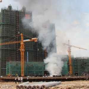 4月13日下午3点40分左右,宝信城市广场一期工程一在建商业住宅工地发生火灾。现场浓烟滚滚,火光冲天。5分钟后,消防队三辆消防车接到报警到达现场。