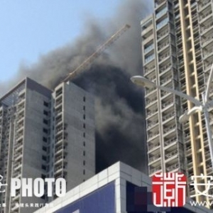 合肥一在建高楼着火 工地辩称为“消防演练”