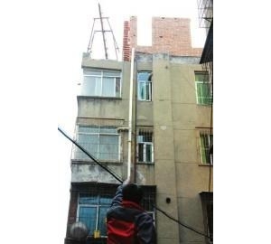 施工现场,顶层的房屋墙体已基本成型。 近日,一条关于楼顶违规搭建新房的帖子,在广元本土论坛引起关注,质疑其为违章建筑。昨日,华西都市报记者采访后了解到,房主正是新民社区主任。目前,施工器具已被东坝街道办事处城监中队收缴保管,并责令停工整改。 目击:加盖房屋已基本成型 21日,网友“拥挤的羊群”在论坛发帖,称东坝派出所前一栋民房在顶层搭建新房,并配发有施工照片。网帖发出后,引来不少网友关注,有网友质疑其为违章建筑。 昨日中午,记者根据网帖信息,找到位于东坝新民社区的施工地。在紧临东坝派出所旁的一栋四层建筑的楼顶,加层房屋已基本修建成型,加盖面积约百余平方米,按两室一厅的格局进行设计。 记者走进该栋四层建筑左侧的小巷内看到,房顶左后侧的角落放置着材料吊装机,楼房底层堆着两堆待用的红砖和河沙,搅拌机的砂浆罐已被拆除,支架旁边倾泻着一堆还未用的砂浆,现场已经停止施工。 连线:社区主任承认是房主 记者从附近的居民和店主那里了解到,加盖房屋是最近几天才开始的。一位女店主告诉记者,晚上也在施工,噪声大,影响了周围居民的生活,“不过,现在租房的人多,修好后出租,也是一笔收入。” 那么,该房屋的房主到底是谁呢?经过多方打听,记者得知在楼顶加盖楼房的房主有5家,且都是亲戚,其中一人为该社区(新民社区)书记兼主任孙某。但对于孙某以及亲属的行为,多数受访者称不好干涉。 随后,记者来到社区办公点,但并未找到孙某本人。通过社区公告栏中孙某的联系方式,记者拨通了孙某的电话。孙某承认该加盖房屋的房主正是自己,但对于详情不愿透露,并匆匆挂断了电话。 处理:城监部门责令限期整改 “今天上午,我们执法人员已经把施工搅拌机等施工器具进行了收缴保管。”据东坝街道办事处城监中队工作人员介绍,此前几天已经得知此事,经过对现场的调查,认定为违章建筑,并多次到现场进行过阻止。 据执法工作人员介绍,他们曾电话联系过孙某到相关部门进行处理,但其一直没有露面,且连夜进行抢修,“我们不得不对其进行强制停工。” 目前,执法部门已经给孙某下发了《责令限期改正通知书》等相关法律文书,责令其停工,并安排执法人员轮流守候。 记者手记 “加盖的房子是不是你的?”“是”。没等记者继续追问,孙某便匆匆挂断电话。记者向城监执法部门核实违规房屋情况时,工作人员透露,已经对孙某进行过几次劝阻,但都没凑效,反而连夜抢修。“黄牌”无效的情况下,执法部门不得不采取强硬措施。既然违规操作,就当受到相应处理,社区主任也得接受改正通知书。