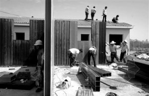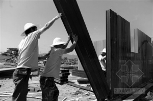 组装安置房 昨日,在房山区最大的灾民安置点——城关街道洪寺村,首批过冬安置样板房亮相,其兼顾舒适性和安全性。此次过冬安置房建设采用了新型材料,与过去活动板房的材料不同,设计使用寿命达到30到50年。这批安置样板房建在洪寺村燕洪路西侧的一片高地上,周边已平整好的坡地上,1000间安置房的地基已经成形,其中一排安置房的样板间已经组装完毕。安置房地基为砖混浇筑,四个角和砖体中缝再用水泥进行二次加固。为防止积水,室内外落差有30厘米,同时还将建设排水明渠,雨水可通过这些明渠流到安置点两侧的大渠。 样板房一排六间,每两排房屋之间相隔4米,每间面积20平方米,房高超过3米。房顶上铺着一层防水塑脂瓦材料,可有效阻挡太阳光,起到隔热作用。房屋前后各一扇窗户,保证室内通风效果。据观察,构成墙壁和顶板主体的木塑板,内部由10厘米见方的方孔构成。中空墙体更能隔热保温。 此次过冬安置房将提供给灾民临时居住3年时间,这种安置房的材料,一旦不再使用,80%的材料和部件可再利用。安置房都用很粗的钢柱从地下固定。施工负责人表示,它可以抗八度烈度的地震。 样板房内,墙上预留了4个插座,分别为电源,有线电视和照明开关预留。据介绍,过冬安置房将可以安装空调,并配有采暖设施,尽量让灾民们冬暖夏凉。此外,屋内还将铺设电话、电视、网线接口。安置房配电箱为分户设计,明确各家用电量,这也有利于长期居住。同时,出于消防安全考虑,现在有可能会改为统一厨房,不过仍可确保每两户有一个灶台,厕所坑位的数量也足以保障灾民的使用。 |