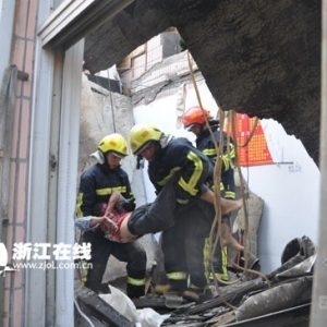 坍塌事故现场 7月23日下午,浙江杭州勾庄一家饭店店面房房顶发生坍塌事故,5名群众被压在了废墟里,经过消防官兵的紧急救援,5名被困人员都被救了出来,其中3人因为伤势严重不幸遇难。 14时23分,消防官兵赶到,现场一片狼藉,掉落的房梁、瓦片将整个房内空间掩埋。消防队员携带无齿锯,液压顶杆,铁铤等起重破拆工具,通过六米拉梯爬上房屋顶部,用挂钩梯与一楼构建一条通道。从被救人员口中了解到,屋里还有3名被困者。救援官兵立即用救援装备,全力以赴寻找被埋压的另外三名被困者,很快,在一块巨大的建筑墙体下发现了他们。 经过消防救援人员1个多小时的生死营救,5名被困人员被成功救出。据悉,房屋坍塌时,被困的为江西吉安籍郭某一家五口,在这次事故中,一名12岁的伤者经过治疗,已无大碍。另一名伤者盆腔和腰椎骨折,暂无生命危险。事故中的另外三人经过全力抢救,仍未能挽回生命,其中一人才3岁。 |