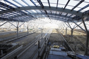 大连北站 大剧院正在内部装修 坐落于城市与海的交会点;结构设计与施工难度超越北京的“鸟巢”、“水立方”;造型奇妙且具震撼力,它就是大连国际会议中心。眼下,国际会议中心其中的大剧院主体已完工,正在内部装修,1650座大剧院未来可接纳大型歌舞剧等多种演出活动。 大剧院设置在由四个组合劲钢柱托起的钢环梁上。大剧院内部,观众坐席已具模样,升降舞台正在焊接中,部分如浮云状的吊顶基本成形,犹如朵朵云彩悬浮在天花板上。大剧院外走廊,工人正在焊接着天花板龙骨,今后市民出剧院、走廊桥可到休息厅歇息、看海。国际会议中心外所用铝板没有一张形状是完全一致,这也是整个建筑造型奇妙的缘由。 大连北站站房初具规模 不久后,南关岭将成为大连城市综合交通的枢纽,大连北站工程是其中最为重要的一枚“落子”。因为这里是哈大高铁、丹大城际快铁、地铁、地上交通的汇聚之处,也将成为市民出行的“原点”和必经之路。 从东联路的华东路匝道下桥,乘车驶入华北路,大连北站站房在不远处巍然耸立、初具规模。渐行渐近,可以看到大连北站南侧支撑起一座开阔平台,这里将是未来的落客平台,乘客乘坐送站车进站,将在这里下车进入高架候车厅。 这里的总建筑面积达6.85万平方米,其中包括南、北站房综合楼,高架候车室,地下出站通廊及其上的站台。相比现有的大连火车站,大连北站要大3倍。大连北站站房采用的是南、北地上进站、高架候车、地下出站的功能格局。据此前披露,哈大高铁计划于今年7月开通,届时北站也将具备相关能力和条件。 |