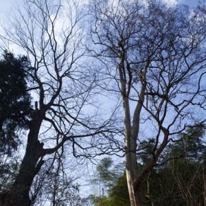 紫薇:别名百日红、满堂红等,为千屈菜科紫薇属双子叶植物。落叶乔木,高可达10米,树皮呈长薄片状,剥落后平滑细腻,产于亚洲南部及澳洲北部。紫薇树姿优美,树干光滑洁净,花色艳丽,花期极长,由6月可开至9月,故有“百日红”之称。为陕西省重点保护植物之一。