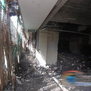 拆除产生的建筑垃圾 曾经因南海网报道而引起社会各界广泛关注的海口“楼歪歪”——违建“富景苑”自从6月底拆除以来,进展顺利,19层的高楼目前已经拆到7层。预计还有一个月时间“楼歪歪”可拆除完毕。 据了解,因未进行任何地基处理,位于海口市龙昆南路的违建“富景苑”在设计阶段就已经存在严重的缺陷和风险,竣工后被其旁边工地指称出现沉降和倾斜,被媒体称为“斜塔”违建,甚至称为“楼歪歪”。而“富景苑”施工方则认为,沉降和倾斜是由于旁边的工地施工不当造成的。 今年的6月1日下午,海口市“五大工程”办公室曾与市城管、住建、水务、供电、区“五大办”等部门,召开紧急联席会议,讨论龙昆南路“富景苑”19层“斜塔”违建的相关问题,会议作出责令违建业主7天内拆除,但直到6月23日,仍无实际进展。6月24日,海口龙华区政府决定组织强迁。 强拆至今已经有三个多月时间,10月12日上午,南海网记者又一次来到富景苑的拆除现场。只见当时19层高的楼房如今只有7层,楼外墙都是用帆布围裹起来,拆除的敲击声不时从楼上传下来。而在一楼却放置很多建筑垃圾,不时还从楼上掉下砸烂的垃圾。 据负责拆除施工的海南亚宇拆迁工程有限公司工作人员介绍,由于这段时间以来天气情况不是很好,为了确保安全,所以放慢了拆除工作的进度,而且进出该建筑物的路狭小,所以大型拆除机器不能进来,因此只能是靠人工操作。 不过,这位工作人员告诉记者,该公司为了加快拆除进度,几乎每天都投入70多位施工工人,按照目前的进度,“一个月时间就可以全部拆完”。 |