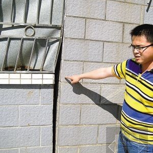 记者昨日看到,龙岗盈翠家园小区因附近工地施工,居民家中墙体开裂。 “我们的房子现在到处开裂,阳台都要脱离房屋主体了,真不知道该怎么住!”家住龙岗布吉盈翠家园小区的吴先生昨日向本报报料称,小区前面的施工单位挖地基,导致小区一栋居民楼整体倾斜,不知道该找谁解决问题。 多户住宅墙体出现裂缝 吴先生家住龙岗布吉盈翠家园小区9栋C座1楼。他说,去年11月开始,他们小区正前方1万多平方米的施工工地开始挖地基,随后9栋的居民陆续发现家里出现裂缝,阳台往外倾斜、墙体移位等情况。 记者看到,吴先生家的整个阳台基本上跟客厅已经脱离了,只有底部连在一起,连接天花板的阳台墙体已经脱落并整体移位,移位距离长达12厘米,而阳台的侧面墙壁,可以直接看到隔壁的阳台情况,移位距离也在10厘米左右。 在该小区9栋C座4楼的高阿姨家,记者看到,防盗门和铝合金窗与墙壁的缝隙,能塞进一个手指,墙壁上还有不少平行的长裂缝,洗手间的瓷砖也出现了裂缝。高阿姨说,不少邻居家的房子都出现同样的问题。 工地无施工许可证 昨日下午,在工地内,记者见到了工地负责人星都置业有限公司的副经理黄先生。他告诉记者,该工地面积为13700平方米,预计将建34层的高楼,目前他们的施工许可证还在申办中,先挖地基再办施工许可证,这是一个“潜规则”。 昨日下午,记者从布吉街道办了解到,盈翠家园9栋正前方的在建工地属于旧改项目,用地手续齐全,施工许可正在申报中。在该工地进行基坑支护施工及土方开挖期间,盈翠家园9栋地面已经发生沉降,房屋局部出现开裂迹象。街道办马上组织工地停工,并聘请了专业单位,对9栋进行安全评估,还要求施工方对地基进行边坡加固。 据参与此次安全评估的中国建筑科学研究院深圳分院工作人员朱先生介绍,从目前的结果看,9栋一楼的阳台存在危险,楼体其余部分暂时处于可控状态,不会发生坍塌。