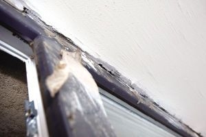 专房验房:验房师对这套房子窗户进行检查,发现窗户外侧上部漏网,而且能明显看到缝隙,抹灰不实。