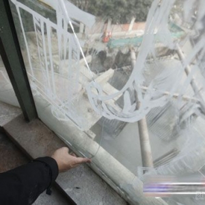 图片说明:10号楼多户居民家的墙体和阳台玻璃出现开裂现象。
