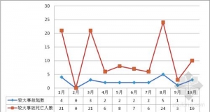 2010年10月,全国有16个地区发生房屋市政工程生产安全事故,分别是四川(3起、6人)、浙江(3起、3人)、河北(2起、5人)、江西(2起、4人)、辽宁(2起、3人)、内蒙古(2起、2人)、山东(2起、2人)、广东(2起、2人)、山西(1起、2人)、吉林(1起、1人)、河南(1起、1人)、广西(1起、1人)、海南(1起、1人)、云南(1起、1人)、甘肃(1起、1人)、新疆(1起、1人)。(见附件)。特别是四川、浙江、河北、江西、辽宁、内蒙、山东、广东事故起数、死亡人数相对比较多。 二、较大事故情况 2010年10月,全国共发生房屋市政工程生产安全较大事故3起、死亡10人,比去年同期事故起数增加1起、死亡人数增加3人,同比分别上升50.00%和42.86%。