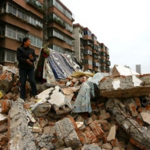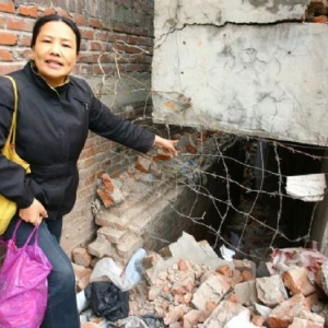 10月25日,贾灵敏指着自己的家说,当初是4层楼现在就剩下这2间了,还进不去。