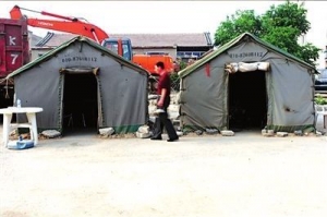 郭大妈的老伴拎着水壶去打水 为了安全住进帐篷 协商无效又担心房屋安全,5月20日,侯大妈和郭大妈两家人在屋外的空地上搭建了两顶帐篷。侯大妈、郭大妈及她们的老伴轮流睡在里面,不敢回家,“吃饭就叫外卖,上厕所走5分钟去公共卫生间”。 昨天,记者在侯大妈的家中看到,其平房的墙壁上的确出现多条裂缝,最宽处能容下一指,而其屋内天花板的瓷砖也几乎全都掉光。郭大妈家中的情况类似,但更加严重。记者在两家搭建的帐篷中看到,里面只有两张床和几个小板凳。在帐篷外,还张贴着“野蛮施工、毁我家园”等字样的横幅。 据侯大妈的子女称,6月1日,有几十人以阻碍施工为由要拆除两顶帐篷,当时,侯大妈等人要求对方出示相关证明文件时,遭到对方拒绝。对方拿剪刀将扎帐篷的绳子剪断,双方一度发生肢体冲突。警方赶到现场才制止双方冲突。 施工方尚未作回复 记者在现场看到,施工工地位于两户居民家的南侧,几名工人正在工地内挖土,几米外停放着两辆挖掘机,工地内最深的沟已经达到10米。工人们称,他们只负责埋管线,其他不清楚。一名值班人员表示,老板都不在,去别的工地了,他们也不知道老板联系方式,他们无法回答。小区物业管理部门表示,他们只负责小区内的事情,并表示不知道有人露宿街头。 昨天下午,樊家村大队的一名安姓负责人表示,大队方面曾经多次联系施工队的负责人,但是没有得到回复。“我们维护村民的合法利益。该调解的也都调解了,该反映的也都反映了,但施工的那块地已经被征走了,施工的只是底下的一个施工队。人家不搭理我们也没办法”。 律师支招 获取鉴定报告再图维权之道 京华律师事务所王佳红律师称,侯大妈和郭大妈应该找专业的房屋质量鉴定机构进行鉴定,调查房屋裂缝是否和施工存在联系,并出具相关报告。如果鉴定结果证明房屋裂痕确系与施工有关,侯大妈和郭大妈可凭鉴定报告提起诉讼,以维护权益。 |