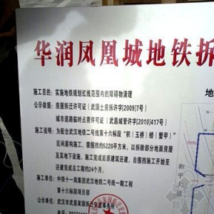 小区居民们纷纷在自家阳台上挂出抗议横幅,华润凤凰城曾经是武汉最高档的小区, 住在里面的人都引以为豪 近日,武昌和平大道刚刚建成5年的小区——华润凤凰城遭遇将拆迁后原地复建,此举引发了极大争议。 业主们反映,新建的商品房,住了没多久就接到通知:房子处在地铁施工线上要拆迁。从张贴公示,到拆建时间只有一个星期,这让业主们一时无法接受。 网友们也质疑:地铁不是几年前就规划好的吗,为什么近几年新建的房子还是挡了道?拆后复建,不仅折腾人,还将造成极大资源浪费。 ■现场 6月5日,记者在现场看到,从汉口穿江而过的地铁2号线工程在江南的首站――武昌积玉桥站,距离华润凤凰城只有50米,工地现场正在热火朝天地施工。 华润凤凰南门的公告栏上,一张由拆迁公司于5月28日张贴的拆迁围挡公示上,写着“最后拆迁的时间6月3日”。