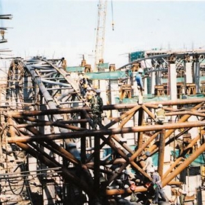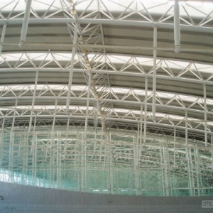 [BAIKE]哈尔滨国际会展体育中心工程位于黑龙江省哈尔滨市南岗区红旗大街,总用地面积63万m2,是哈尔滨市标志性建筑,是多届哈尔滨国际经济技术洽谈会举办地,在哈尔滨乃至黑龙江省的地方经济发展中占有极其重要的地位。 哈尔滨国际会展体育中心工程从总体上分为三大独立建筑单元,由国际会议展览体育中心(主馆)、五万人体育场、国际会议中心(酒店)组成,整体建筑呈U形,各单元建筑功能和结构组成均相互独立。 哈尔滨国际会展体育中心主馆总建筑面积约为22万m[SUP]2,由国际展览中心、综合训练馆及体育馆组成。主馆外形呈长方形,南北长151m,东西前长510m,后长618m。主馆中心部分全长510m,为了满足建筑的大空间要求,采用一端简支于混凝土柱、一端简支于人形摇摆柱的大跨度张弦桁架(跨度128m),是目前国内张弦桁架结构项目中跨度最大的一个。 哈尔滨国际会展体育中心主馆钢结构屋盖结构由35榀张弦桁架组成,桁架总长达140m,单榀桁架重约 154t,桁架间距15m。由于张弦桁架长度长,重量大,加之施工场地、运输条件及施工安装进度等原因,施工时先将杆件散拼装成小段,然后在施工现场高空总拼装成完整的桁架,再进行整体吊装、滑移、就位。 技术经济指标: 单榀主桁架总重157.17t(含压杆、铸钢件、索); 最大滑移单元重量为1860t; 整体钢结构总重12000t; 钢结构部分总造价1.26亿; 钢结构单价12880元/t。 二、新技术应用与科技创新 1 .张弦桁架合理先进的结构选型 桁架的矢跨比、垂跨比、撑杆的数量及方向、下弦拉索与上弦桁架的连接位置、拉索初始预应力分布等各重要参数都会对张桁格架的受力性能产生重要影响,本工程经过细致、系统的优化设计,圆满地解决了以上各重要参数的优化取值,使得桁架总体结构选型趋于完善。 2.张弦桁架的理想支承体系 预应力张弦桁架由前端的人字形摇摆柱和后端的刚性柱支承,桁架与刚性柱之间连接为固定铰支座,摇摆柱使桁架与下部结构间形成了理想的可动铰[BAIKE]支座,使超大跨度的张弦桁架的整体受力形成理想的简支形式,这样可以很好地释放桁架中的温度应力,同时可以不对下部结构产生较大推力,大大简化下部结构和基础结构的设计。 3.采用先进合理的关键[BAIKE]节点构造 张弦桁架中根据需要分别采用了铸钢节点、直接相贯[BAIKE]焊接节点和销轴节点,避免了节点处产生复杂焊缝温度应力、减少了现场工作量、提高施工质量并大大缩短了施工工期。针对本工程专门开发的复杂形式铸钢节点制造工艺在其他一些重要工程中得到了广泛应用,提高了我国在建筑用铸钢节点关键技术方面的核心竞争力。 4.采用先进完善的结构分析 通过先进完善的精确分析,确保结构安全性与可靠性,使这类新颖的超大跨度[BAIKE]预应力张弦桁架顺利安全地建造,并能够顺利一次高精度拼装合龙。专门开发了一套具有自主知识产权的与通用有限元软件无缝连接的设计模块,大大拓展了通用有限元软件的设计能力,采用本专用程序,大大提高了设计效率,并保证了结构分析与设计的准确性。目前该程序己成功在其他许多重要工程设计中应用,取得了非常突出的成果,为我国在大型复杂结构分析与设计软件的自主开发提供了新思路。 5.采用合理可靠的施工组织 创造性地采用分段滑移和累积滑移相结合的分段累积滑移施工方法。滑移施工时,张弦桁架一端简支于混凝土柱、一端简支于人形摇摆柱上,张弦桁架和人字形摇摆柱同步滑移,大大简化施工工序并极大地提高了施工效率,为我国大跨度复杂结构的整体滑移施工积累了宝贵经验,该施工方法可在其他类似工程中借鉴使用。 三、获奖单位 浙江精工钢结构有限公司 哈尔滨国际会展体育中心有限公司 哈尔滨工业大学空间结构研究中心 黑龙江省建筑设计研究院 哈尔滨工业大学建筑设计研究院 |