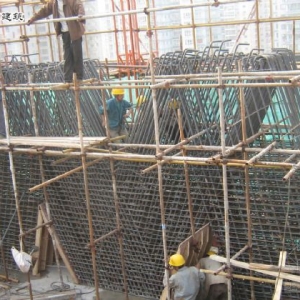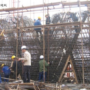 10-14层是本工程的结构转换层,结构受力形式转换,异型柱、巨型柱通过柱上起斜柱和大梁上起斜柱的方式转换成截面较小的框架柱,构件本身的配筋相对比较密集,尤其体现在13、14层竖向结构部分;在柱柱交叉处、柱梁交叉处钢筋纵横交错,总体施工难度非常大,有些地方甚至没有办法按照正常的方法进行施工; 钢筋部分:针对该阶段钢筋的情况,在认真研究图纸以及相关规范和图集之后,与设计单位、监理单位沟通采取如下措施: 斜柱及梁的钢筋交叉处不仅主筋十分密集。箍筋也是十分密集至14层楼面,按照将交叉处柱子看作一个组合柱进行箍筋绑扎的原则进行施工。 将此部位钢筋箍筋放样,落实至责任人,确保质量与进度;为保证下部柱子钢筋能顺利通过梁底,KLX1508、KLY1508梁梁筋按三排放置,且一排筋多于二排筋多于三排筋; 模板部分:因柱柱交叉处,柱子体积大,且柱子为斜柱,模板加固难度较大;为保证柱子尺寸,模板支设之前将模板图放样,根据放样图进行配模,再至现场进行支设,同时为保证斜柱的倾斜度,加强定位筋的控制及检查。 中国建筑一局(集团)有限公司温州世贸中心大厦工程进展由筑龙动态 全程报道 相关内容: 温州世贸中心大厦现场实拍转换层M柱钢筋工程(一) 温州世贸中心大厦现场实拍转换层钢筋工程(二) 温州世贸中心大厦现场实拍转换层钢筋工程(三) 温州世贸中心大厦现场实拍转换层混凝土工程 温州世贸中心大厦现场实拍转换层模板工程 |
