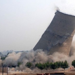 8月15日,在陕西省政府召开的“上大压小”关停小火电机组现场会上,大唐渭河发电厂2×5万千瓦的小火电机组被现场爆破拆除。2007年1至7月,我国已关闭695万千瓦能耗高、污染重的小火电机组,完成全年计划任务的近70%。这是小火电机组爆破瞬间。