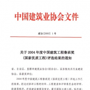 关于2004年度中国建筑工程鲁班奖(国家优质工程)评选结果的通知