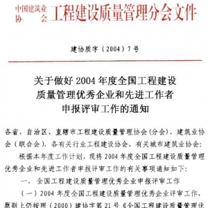 关于作好2004年度全国工程建设质量管理优秀企业和先进工作者申报工作的通知