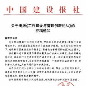 关于出版《工程建设与管理创新论丛》的征稿通知