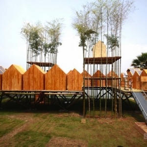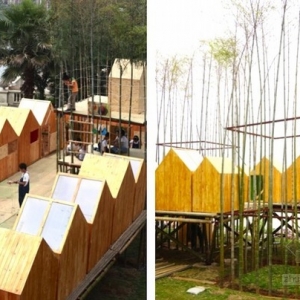 两丛欣欣向荣的竹子、结实的竹竿平台、一系列小巧的棚屋,一座“天空之城”就这样展现在你的眼前。为了探索自然和建筑之间的关系,建筑师们利用生长中的竹子和一些绳索,制作了这些竹屋。代替了原有破坏性地砍树取木的造房方式,该建筑与自然更加和谐,当然,他仍然需要在未来长时间的观察其坚固实用性。 在传统的中国式“严酷和死记硬背”的教育模式下,孩子们丧失了与大自然亲密接触的机会,而本次研讨会的组织者正是试图解决这一点,家长们同样借此机会能够参与其中。在建筑师全程指导下,研讨会的成员都参与了草图绘制、房屋建模和现场工程。
