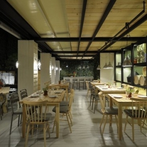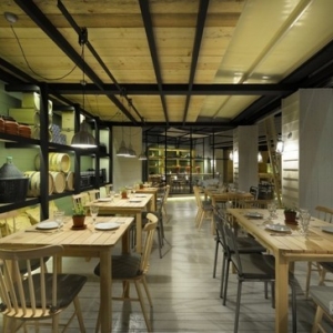 FABRICA KREATON餐厅室内设计,位于希腊,由Minas Kosmidis设计师设计。整个空间内以木色为主体色彩,以稀少的红色作为点缀色,家具全部采用木材,彰显出了一种回归大自然的强烈愿望。