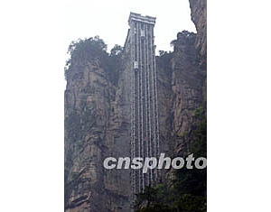 在湖南张家界武陵源风景区建造的百龙旅游电梯最近开始试运行。该电梯垂直高差三百三十五米,运行高度三百二十六米,是目前世界上最高的全暴露观光电梯。