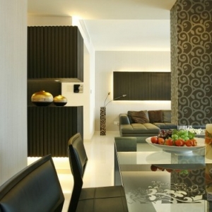 时尚简约住宅室内设计,位于汕头市滨港路的高层住宅,面积为135平方米。空间内融合不同的装饰元素,以现代化的手法创造出一种简约时尚、实用舒适的空间环境;空间内色彩沉稳不失灵动,以黑白对比色为主,创造出空间的反差;利用灰色的渗透,让整个空间的层次感更为丰富;巧妙的灯光、精美的墙纸、时尚的家居,营造出和谐、统一的装饰效果。