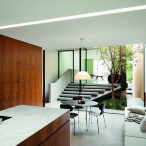 天光屋室内设计位于澳大利亚悉尼,当Chenchow Little的建筑师着手恢复这座传统的维多利亚时期的住宅时,面临的要求是要保证原建筑沿街立面的完整性,因为该住宅的立面是街景的重要组成部分, 因此在建筑师的努力下,这座华丽的白色立面后面隐藏了一个包括三间卧室,两个卫生间和一间新厨房的美丽而温馨的小家庭和传统的维多利亚式露台住宅不同的是,建筑师将次卧室放在了首次而起居室放在了顶层。如此一来,起居空间可以通过屋顶大天窗获得灿烂的南向自然光线,同时可以看到帕拉马塔河的美景。