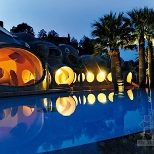 它的名字叫“泡泡宫”,很切合实际。它是一所住宅,它表达了建筑师Antti Lovag对住宅设计的基本概念,他视建筑为一种自发的形式游戏,充满乐趣和惊奇。该建筑建造于1989年,坐落在一个了望地中海的峭壁上。它是“设计皇帝”皮儿.卡丹的住宅设计,它采用了建筑师Antti Lovag常用的泡泡形状。“泡泡宫”成为很多时尚照片的布景,它经常被电影节或是其它重大事件租用。它有视觉的效果,同时,它满足居住功能。