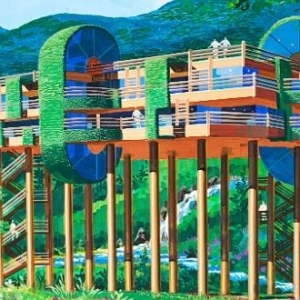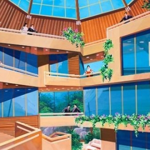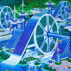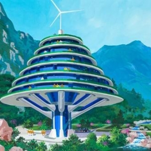 简介:朝鲜金刚山地区,架设在瀑布周围的度假别墅群的效果图 未来纺织的合作模式:乡村地区的工人聚集在这里,集中操作的工作环境为风力涡轮机和直升机降落平台的安置提供了充足的空间,这实际上展现了朝鲜传统手轮 ...