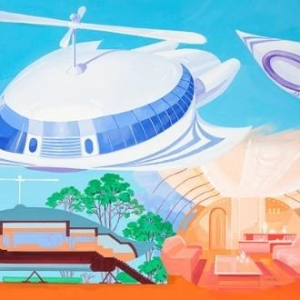 对蓝天的遐想:图中展示了一栋飞行屋同时可以充当气垫飞船。