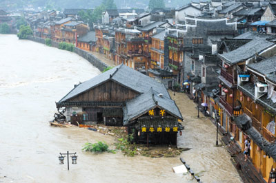凤凰古城被淹 19.6万人受灾,紧急转移居民和游客12万余人,受灾店铺近4000家……这两天,在暴雨下,湖南凤凰古城惨遭“落水”,引发广泛关注。 此次凤凰洪灾,一方面是由于一场百年未遇的洪水,更重要的一方面是因为城市管理、规划方面的不足导致了受灾严重。 洪水“三百年一遇” 根据凤凰县防汛部门介绍,这次大雨过程和洪水的量级属于“三百年一遇”,是“不可抗拒的重大自然天灾”。这次暴雨是凤凰县有水文记载以来河道水位最高、上游入库和出库流量最大的罕见巨大洪灾。 据了解,凤凰县多年平均的年降雨量才1200多毫米,这两天的降雨量却突破了300毫米,相当于两天降下了一个季度的降雨量。目前,凤凰县已启动了Ⅰ级防汛应急响应,景区已经关闭。 从湖南水利部门获悉,这场自然灾害不仅仅发生在凤凰,周边的麻阳、辰溪、泸溪、吉首等地都遭遇了暴雨和洪水的袭击,有的地方洪灾比凤凰甚至更为严重。凤凰的灾情受到如此关注,是因为它的身上有着“海内外知名旅游城市”的光环。“洪灾这么大,谁来帮助我?”在凤凰古城经商的旷先生告诉我们,这次洪水比过去任何一次都大,他的店铺位于古城临江的街巷内,十几万元的绣花鞋全部泡在水中,多年的心血一下子就没有了。 凤凰县政府一位官员介绍,7月15日5时左右,当工作人员挨家挨户通知沿江的居民撤离时,有些人还不以为然,认为“过去最高的水位也没有进家门,不用担心”,以至于耽误了不少时间,财物也来不及搬走。 规划差加重灾情 在罕见的洪灾面前,凤凰古城建筑规划不合理、基础设施薄弱、景区景点开发无序等顽症,暴露无遗。 原来两层的房子,过几年便加盖一层。再过几年,已经“长”到四层。为了躲避执法,凤凰古城的违章建筑大多是晚上修建。由于地基承重有限,这些建筑在洪水的浸泡下,险象环生。 由于凤凰的酒吧绝大多数临江,这些酒吧在怒吼的洪水面前,显得不堪一击。 最令人无语的是沱江上新修的数座桥梁,离水面特别低,洪水来临便被吞没。杏子边城客栈的店主张吉清说,这些桥在洪水中不仅不能通行,反而成为碍洪的物体。 凤凰县水利部门对此解释称,沱江几座桥的设计是根据凤凰的水文记录来考虑防洪措施的,符合规定的防洪设计标准,之前没有出现过险情。但是这次暴雨是凤凰县300年以上一遇的巨大洪灾,已经超出设计的考虑范围。 凤凰该如何“华丽转身”? 洪水给凤凰带来了沉重的灾难。有关水文和规划方面的专家认为,凤凰应该从3个方面吸取教训,实现城市建设的“华丽转身”。 首先,旅游城市的建设布局首先要考虑自然灾害因素的影响。凤凰作为河流峡谷中的城市,容易受山洪、泥石流的袭击,因此建筑的高度应该高于历史最高水位,并且还要适当留出一些余量。 其次,防止商业资本的过度无序开发导致的安全隐患。政府有必要对火热的旅游业态展开重新规划,对经营活动加强梳理和规范。 此外,对于游客荷载量密度日益增加的核心区,可以“扩容体质”,减轻核心区的压力,对游客进行适当的分流,同时也能提高游客的旅游满意度。 |