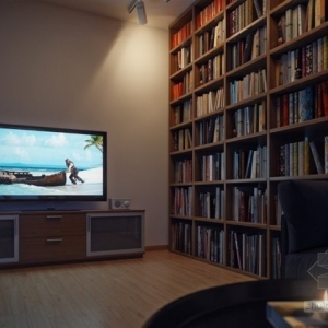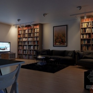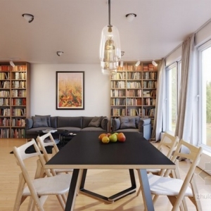 木质与白色装饰的完美平衡,开放式公寓室内设计欣赏,满墙的格子书架是整个空间中的亮点,既装饰又达到了美观的效果,木质与白色装饰的搭配也显得格外的亲切...