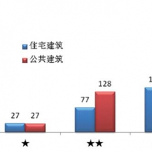 由上图可看出,住宅建筑和公共建筑的单位面积增量成本均随着星级的增高而增加,同时,一星级住宅与公建的单位面积增量成本相近,二星、三星级公共建筑的单位面积增量成本远高于同星级住宅建筑。 图10显示了2010~2013年的绿色建筑单位面积增量成本。可以看到,发展趋势基本一致:在2011年达到一个峰值,从2011年以后,一星级和二星级住宅建筑的增量成本变化不大,三星级住宅建筑呈明显下降趋势;3个星级的公共建筑增量成本每年下降的幅度都很大,其中,2013年三星级公共建筑的增量成本已接近2011年的一半。