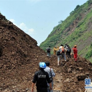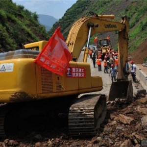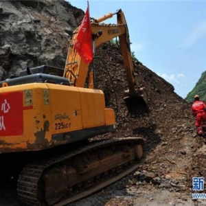 8月7日,挖掘机在昭巧公路一塌方路段实施抢通作业。当日,刚刚抢通的云南省昭通市鲁甸县通往巧家县的二级公路又由于频繁的余震多处塌方,当地公路部门投入多台装载机和挖掘机实施抢通作业,共清理塌方10余万立方,目前昭巧公路已恢复通车。 |