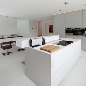 运用全新材料打造的——天然丙烯酸石,为我们呈现了这样一幢惊人的住宅室内设计。它位于德国的巴伐利亚州,距离Ammersee湖很近,从巴伐利亚州的上空俯瞰,这里呈现的是一个占地约为1200平方米森林环绕着一个建筑面积超过395平方米的现代建筑。