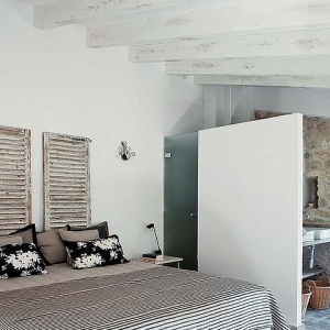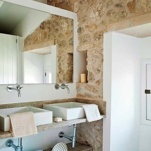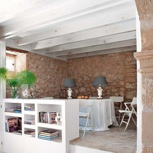 地点:西班牙马略卡岛 设计:Mestre Paco 在这个四季恒温冬暖夏凉的地方,地中海的清风佛过脸颊,拥有一座漂亮的别墅大概是很多人的梦想。这幢地中海乡村别墅由Mestre Paco设计,让人觉得和自然融为一体。石墙的表面,木制的百叶门窗,房子的外观看上去像是一幅画。进门处和客厅的石砖地板是室外到室内现代设计的过渡,用餐的部分以台阶和储物书架和客厅分隔开来。这样奇妙的室内设计是不是能给你一些灵感...