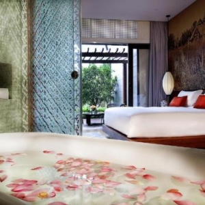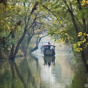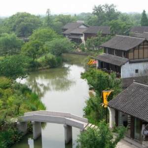 坐落在杭州西溪湿地公园东南角的杭州西溪悦椿度假酒店围绕着氤氲流水和簇簇花木,一派江南水乡的景色。堪称是古今中外结合的新派江南水乡。依傍湿地而建的酒店充分体现了悦榕集团的环保理念,水道与溪流四面流通,酒店则因循水道在别墅间架起石桥。
