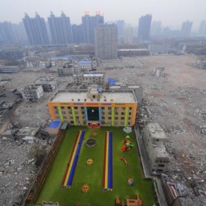 孩子在被“废墟”围绕的环境下学习 家长能放心吗?
