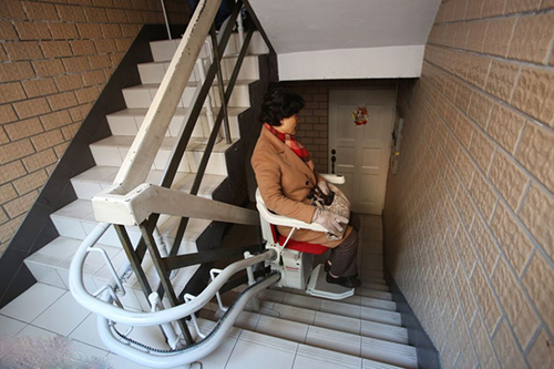 2014年12月16日,国内普通居民住宅区首部“座椅式”电梯日前落户上海市静安三和小区。当日上午,“座椅式电梯”捐赠仪式在小区12号楼举行。图为72岁的王黔阿姨熟练地打开座椅下方的电源,系上安全带,操纵启动手柄,座椅式电梯载着她平稳地徐徐爬向7楼。王阿姨高兴地说,这部电梯她每天都乘,对老人来说确实方便多了。 每个需经停楼层安装了无线控制器,老人上下楼只要按下按钮,就可以呼叫电梯。老人坐在座椅上,自行扣好安全带,无需他人帮助,就可以每分钟9米的速度上下楼。 相比传统的轿厢式电梯,扶手电梯不会对老旧公寓的结构进行改造和破坏,导轨完全是根据楼道和楼梯定制,可直接安装。扶手电梯可载重120公斤,配有安全带和红外线感应安全系统。一旦乘梯老人的肢体碰到导轨、阶梯或者行人距离座椅小于30公分都会立即停止。 |
