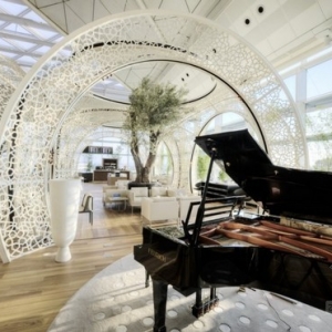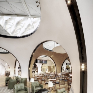 所 在 地:土耳其 伊斯坦布尔面积:3000平米这是土耳其航空公司位于阿塔图克机场国际航站楼里的CIP 休息室,每日可接纳2000名旅客。该休息室的基本目标是让乘客体验现代土耳其式风情。休息室主题结构是由传统建筑拱廊系统形成的,整个空间呈圆球形,分为多个空间,每个空间都有不同的功能,有休息室,餐厅,茶吧,图书室,影音室等等,房间之间由黑色的通道连接,为旅客带来全方位的舒适体验。