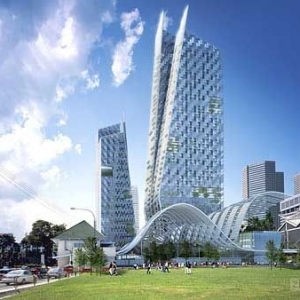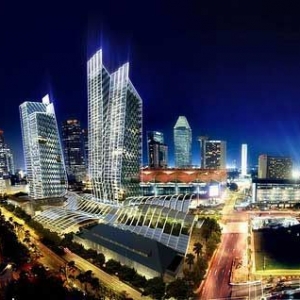 这个小街区的设计延续了新加坡“城市花园”的理想,大体量的滨海综合体提供了15万平米的生态居所;其特点在于高绿化率的空中花园和底层的有机屋盖。 或者简单说,这个设计的亮点就在“塔楼+裙房”的常规手法之外,增加了一个覆盖整个基地的生态顶棚,丝带状曲面结构不仅能防晒通风还可以改善地面小气候,提供了优质的绿化空间和公共活动场所。生态建筑的概念说起来很高科技,在实际方案中可能只要很小的创意就达到不错的效果。