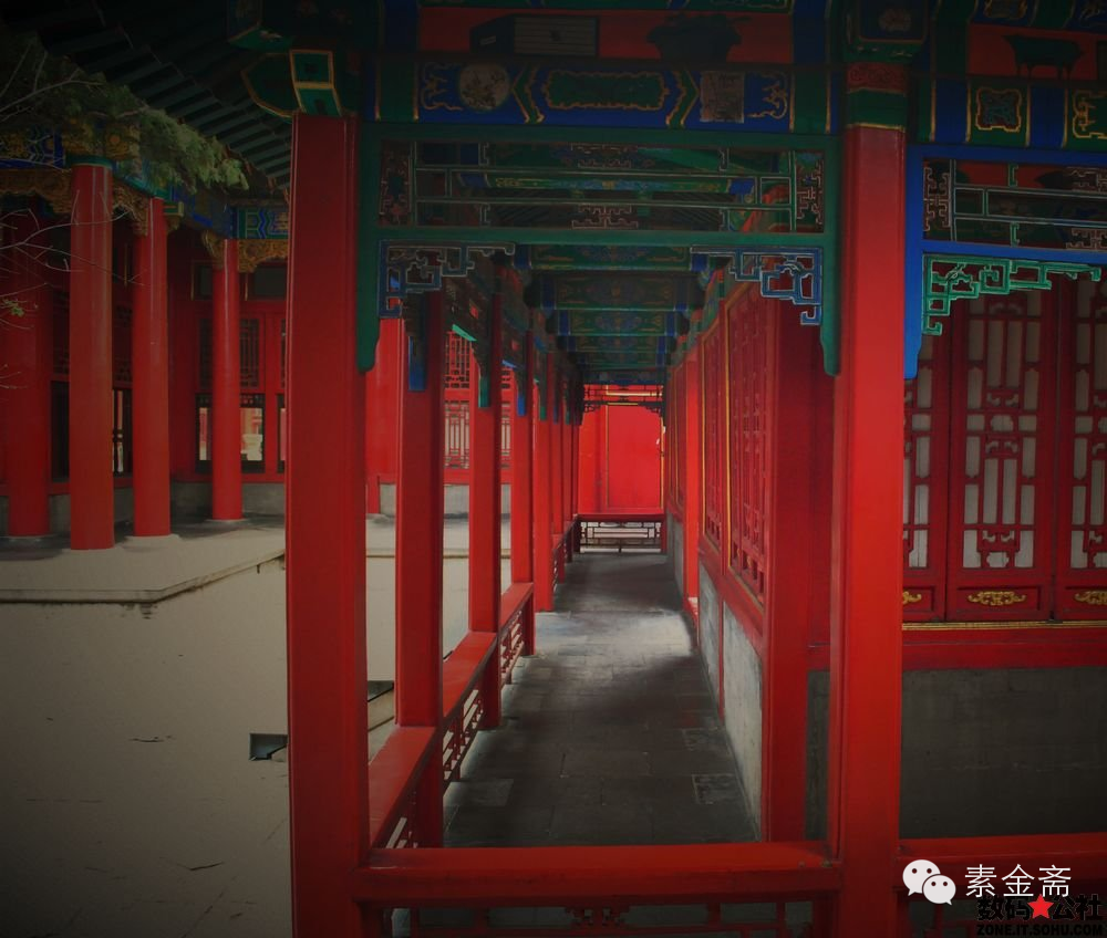 这样使用强烈对照的原色(primal colours)在很大程度也是自然环境所使然。在平坦广阔的华北黄土平原地区,冬季的自然景色是惨淡严酷的。在那样的自然环境中,这样的色彩就为建筑物带来活泼和生趣。可能由于同一原因,在南方地区,终年青绿,四季开花,建筑物的色彩就比较淡雅,没有必要和大自然争妍斗艳,多用白粉墙和深赭色木梁柱对比,尤其是在炎热的夏天,强烈颜色会使人烦躁,而淡雅的色调却可增加清凉感。 |
